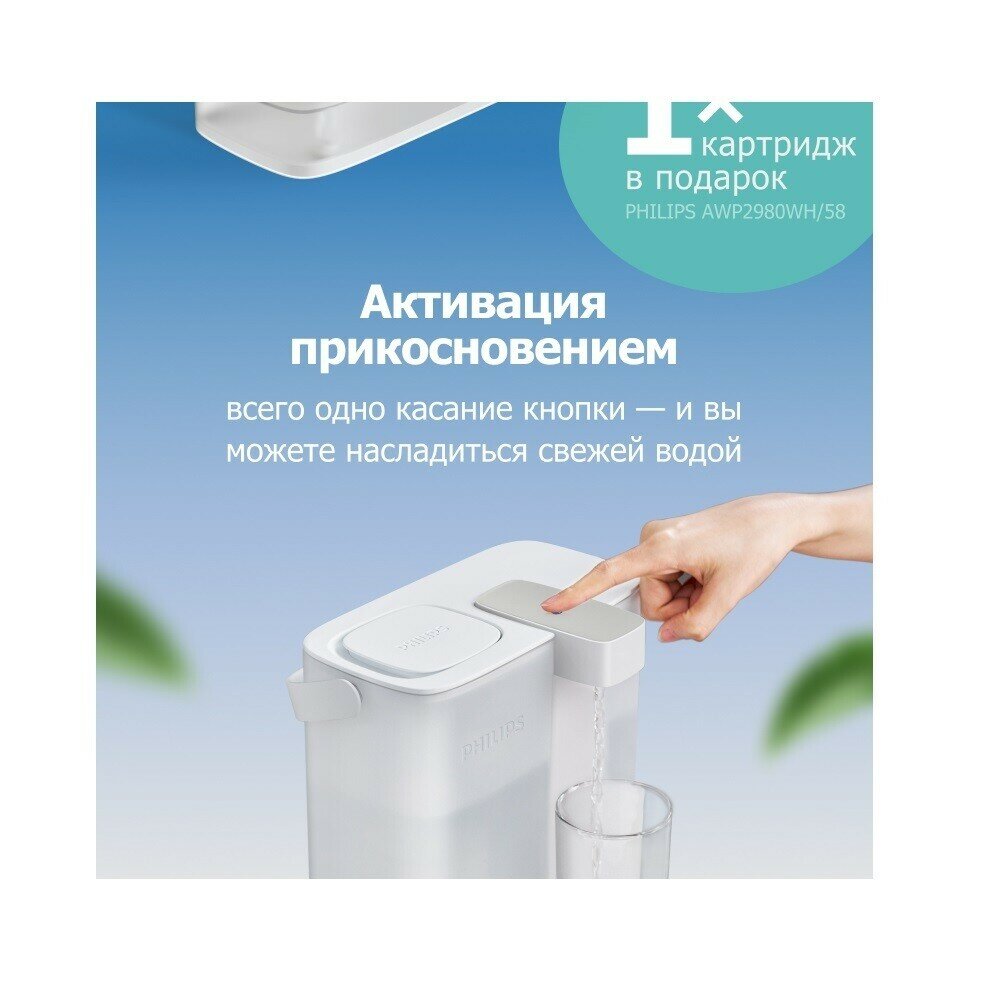 Фильтр-диспенсер для воды Philips AWP2980WH/58, 3 л, с картриджем Micro X-Clean