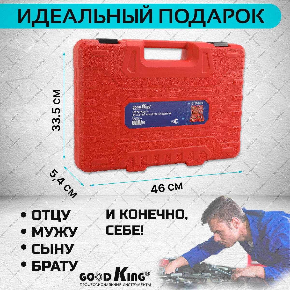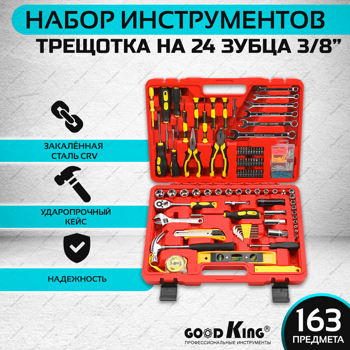 Набор инструментов GOODKING, 163 предмета, трещотка 3/8", 1/4", для дома, в чемодане (D-10163)