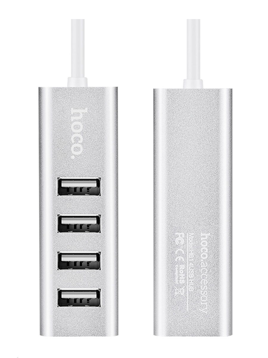 Переходник HOCO HB1 USB HUB на 4 порта, серебристый