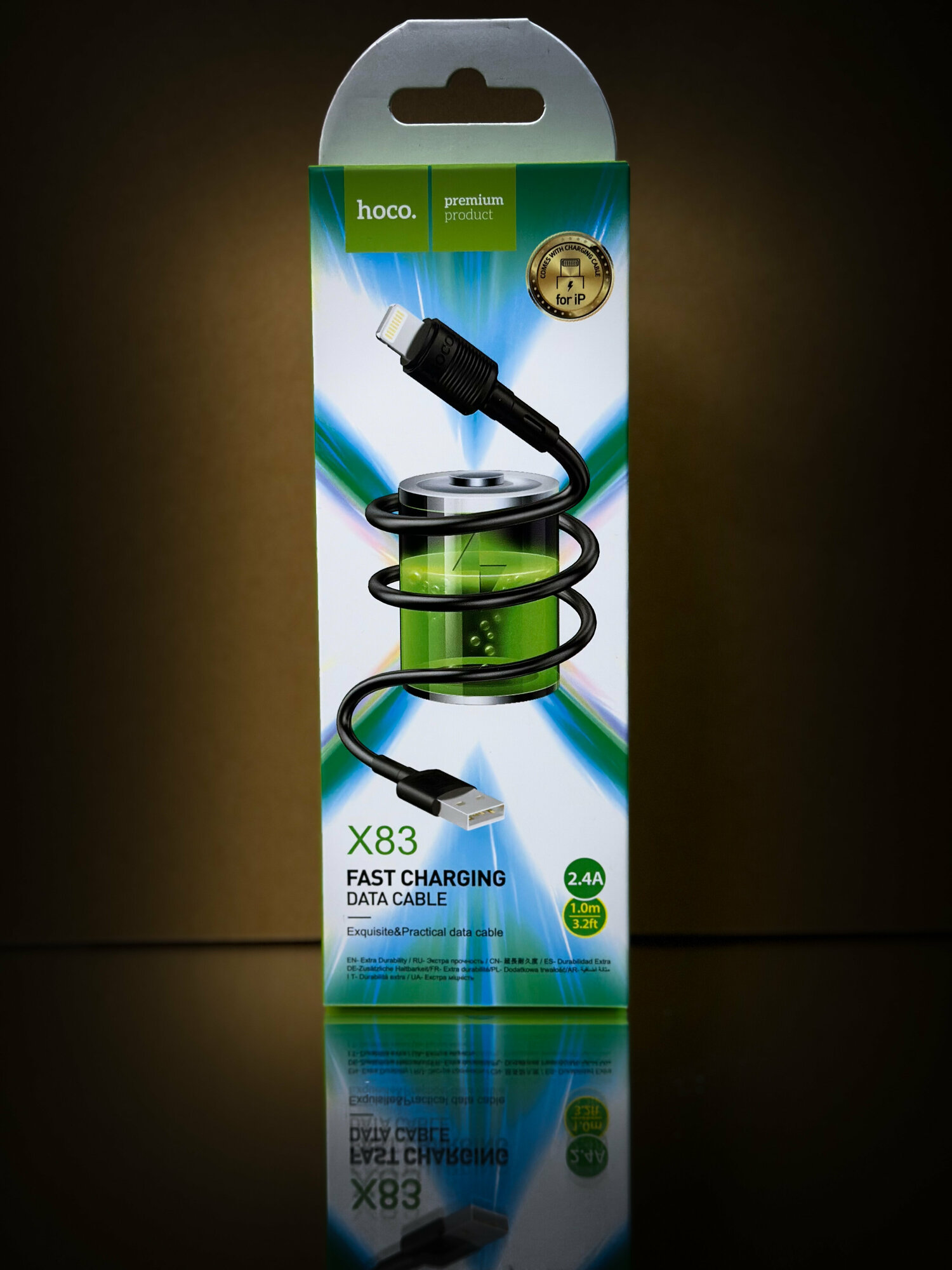 Кабель для зарядки телефона USB-Lightning IP, для смартфона Apple; hoco провод 1 метр; 2.4A