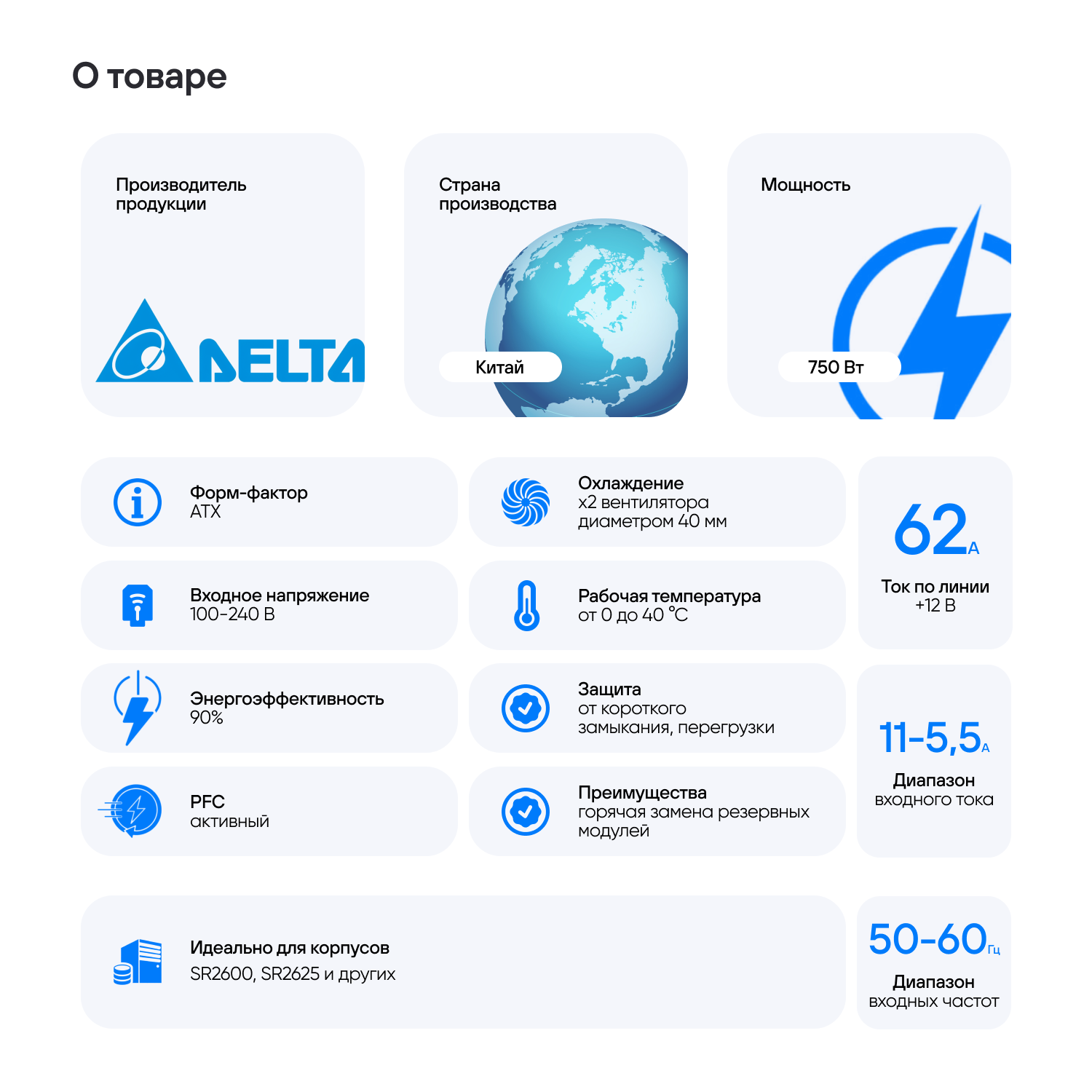 Блок питания Delta Electronics DPS-750EB A 750W Hot-swappable and Hot-Pluggable Supplies 105-000-162 ASR2500PS D20850-006 интересное: