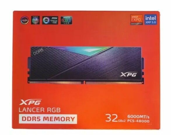 Модуль памяти A-Data XPG Lancer RGB DDR5 DIMM 6000MHz PC-48000 CL30 - 64Gb KIT (2x32Gb) Black AX5U6000C3032G-DCLARBK