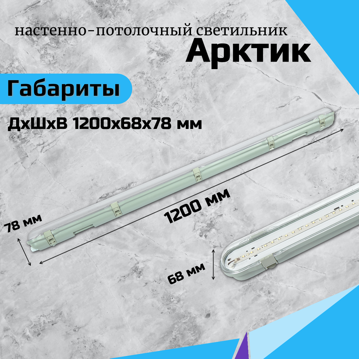 Линейный светодиодный светильник арктик AAX085 38Вт, 4000 Lm, 5000К, IP65, Oпал, накладной для торговых, административных и производственных объектов