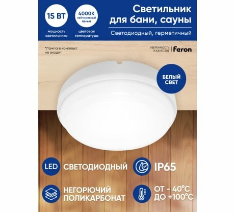 Feron светильник светодиодн. ЖКХ (ДПБ) 15W 1200Lm 4000K 4K IP65 круг бел сауна/баня 100гр 175x175x52 AL3013 41756 (арт. 818122)