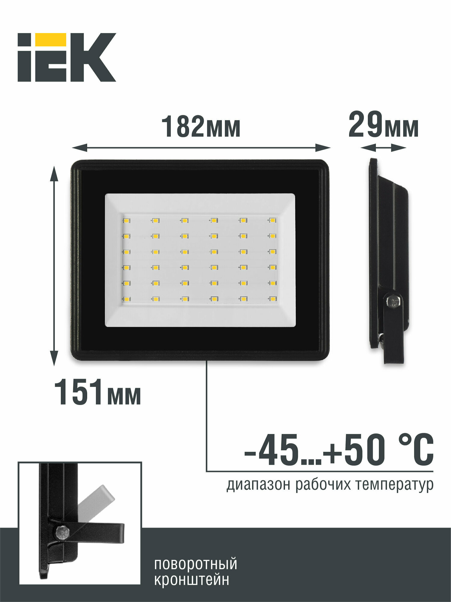Прожектор светодиодный СДО 06-50 IP65 4000К черный IEK интересное: