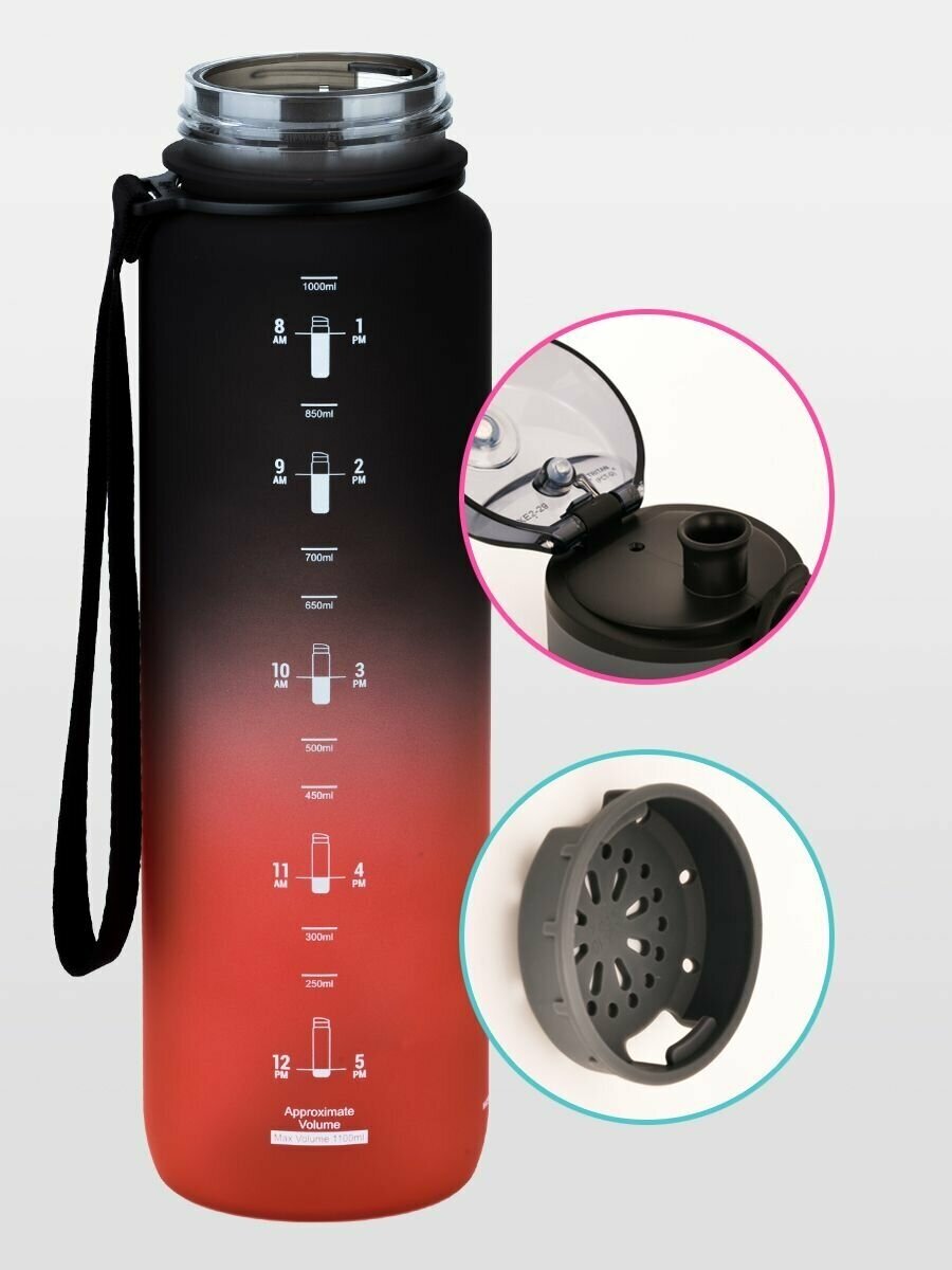 Бутылка для воды спортивная Uzspace 1000 мл черно-красный