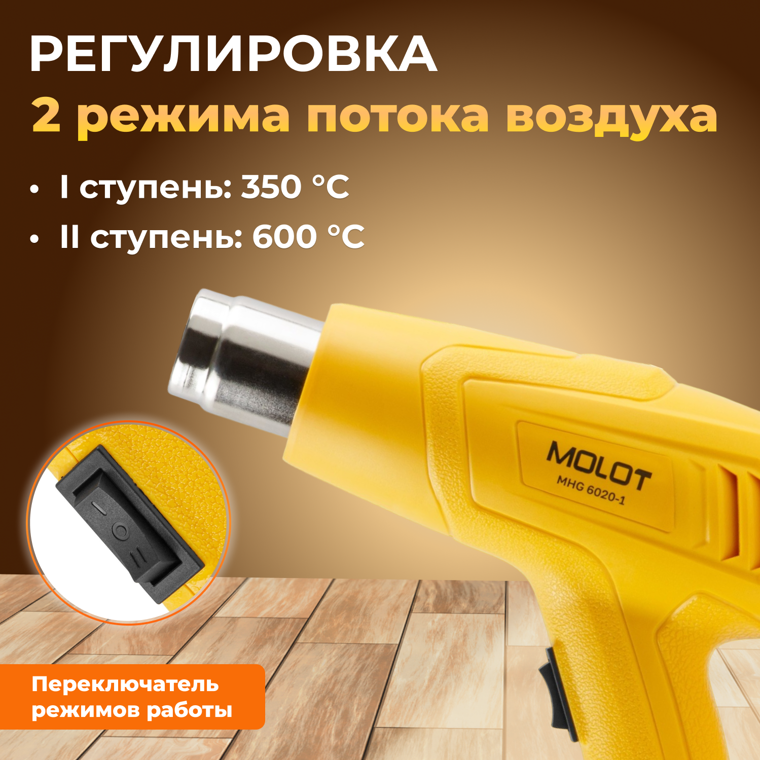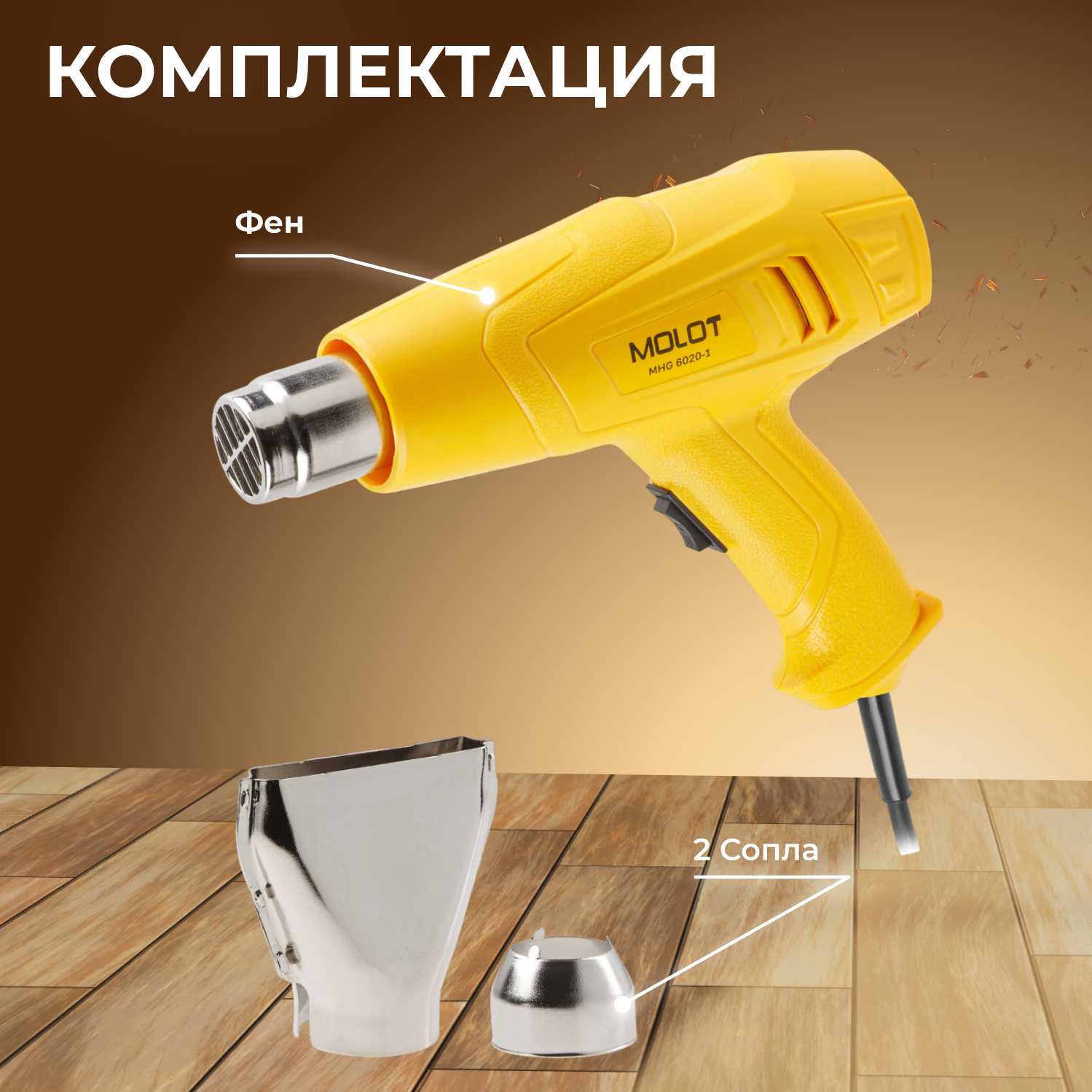 Купить Фен-термовоздуходувка Molot строительный MHG 6020-1 + набор сопл