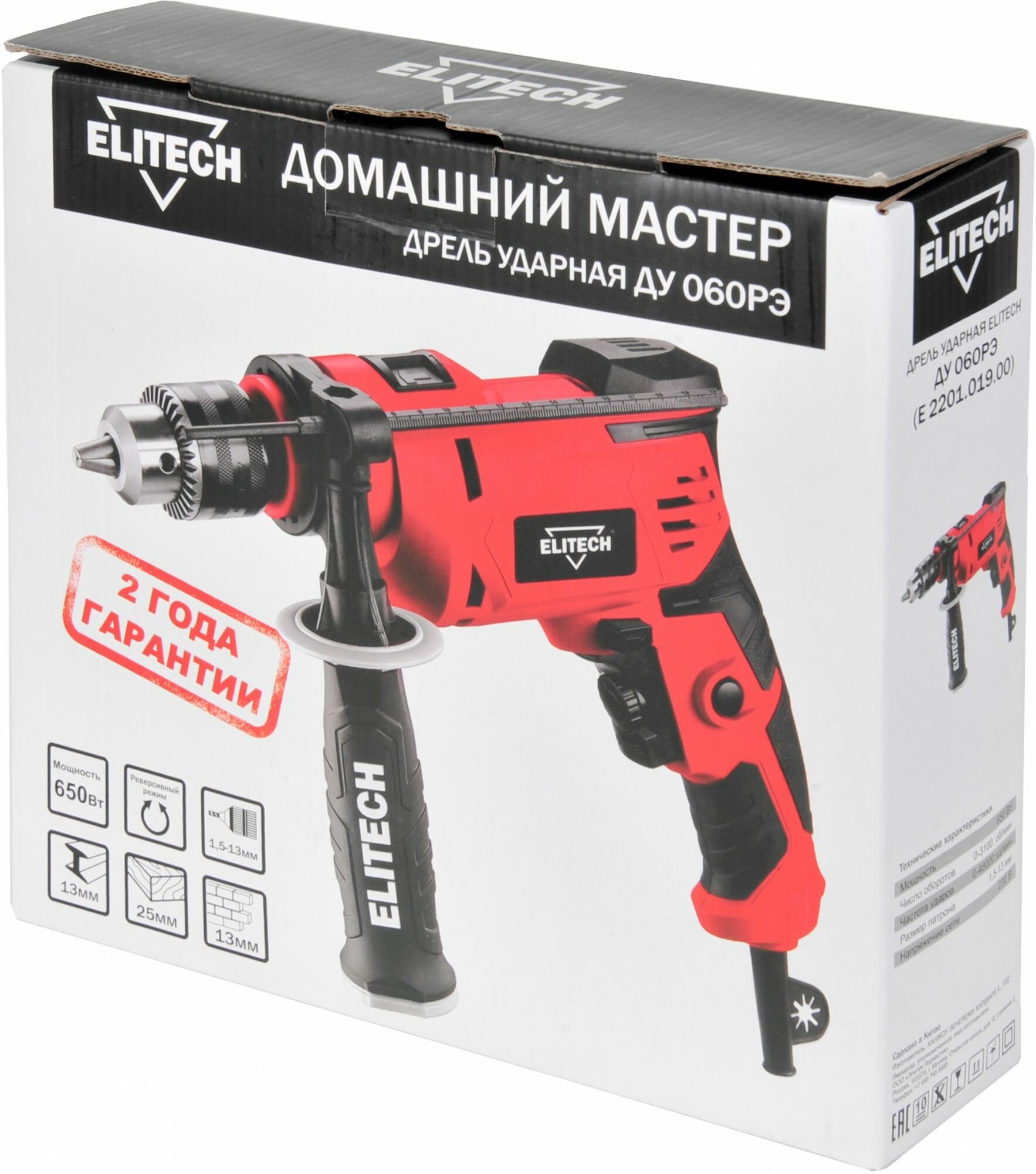 Дрель ударная Elitech ДУ 060РЭ (E2201.019.00) 650Вт ключевой реверс (E2201.019.00) интересное: