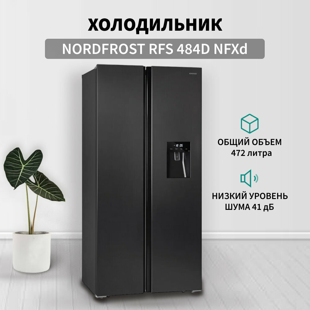 Холодильник NORDFROST RFS 484D NFXd, Side-by-Side, инвертор, 472 л, темная нержавеющая сталь