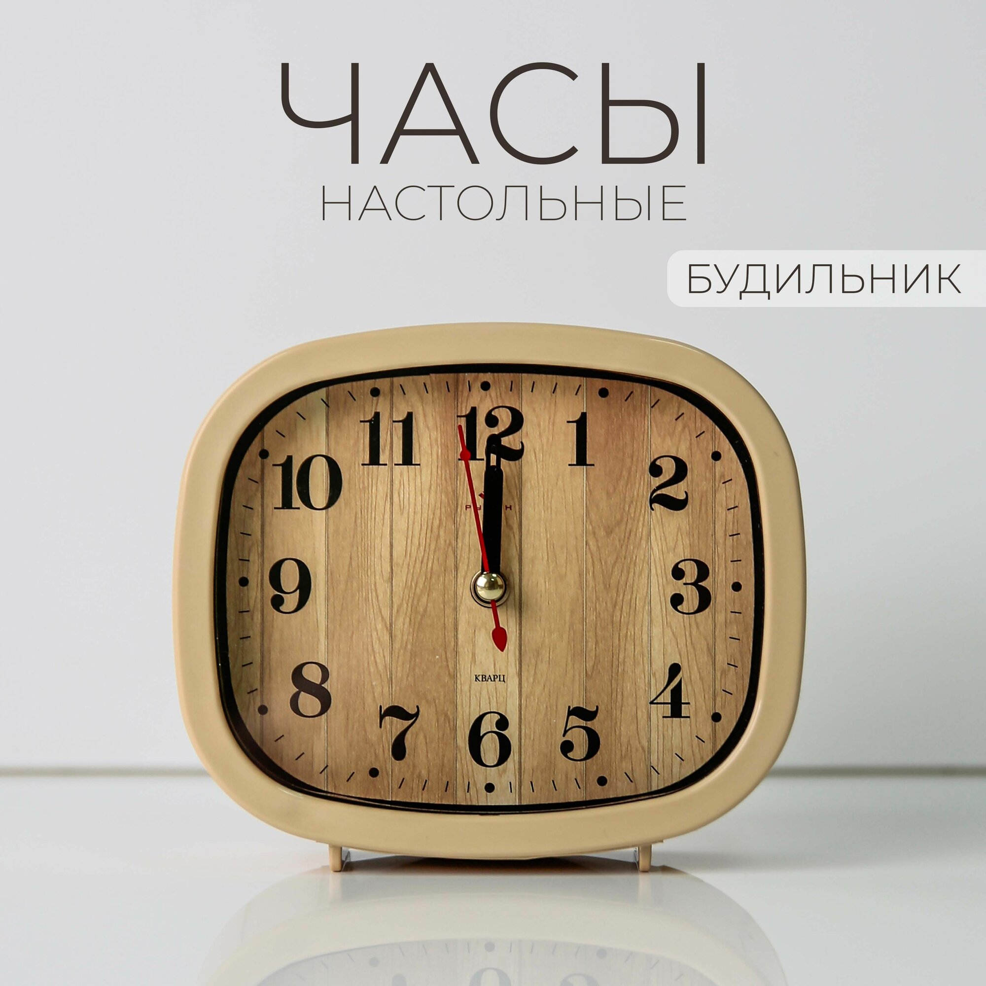 Будильник Рубин "Дерево" В5-005, настольный, кварцевые, пластик, стекло, темно-бежевые