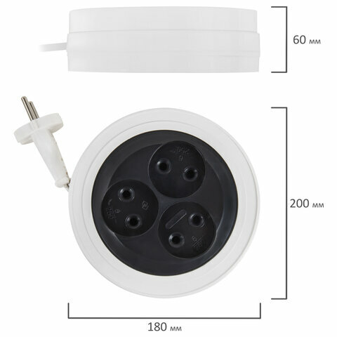СохранитьКомплект 5 шт, Удлинитель-рулетка радист эконом Р16-008, 3 розетки без заземления, 5 м, 2х0.75 мм, 1300 Вт, белый, 323 интересное: