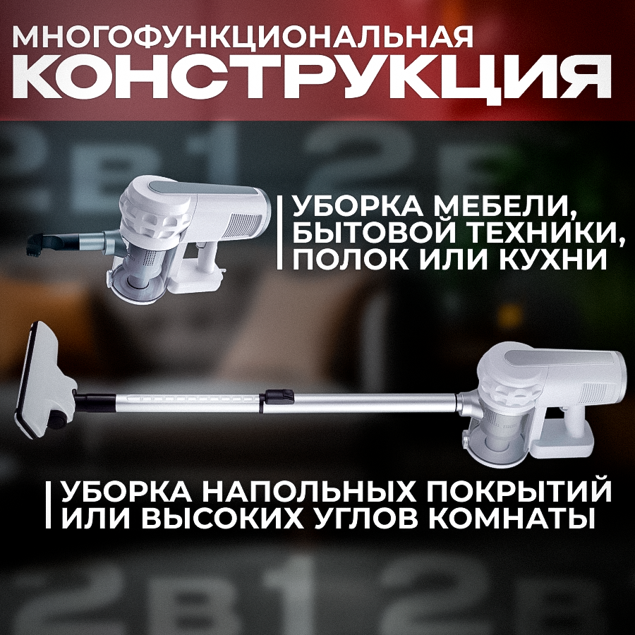 | Дополнительная информация | Модель: XCQ-103. Количество насадок: 10 шт. Аккумулятора нет. Питание: от сети; в розетку. Труба для всасывания: телескопическая. Количество режимов уборки: 1. Тип пылесоса: Пылесос вертикальный для дома 2 в 1; Ручной пылесос; Бытовой вертикальный пылесос. Тип пылесборника: контейнер; без мешка; безмешковый. Напряжение: 220 В. Тип управления: Ручной; Управление на рукоятке; Включается в стандартную розетку. Материал корпуса: пластик; abs пластик. |
