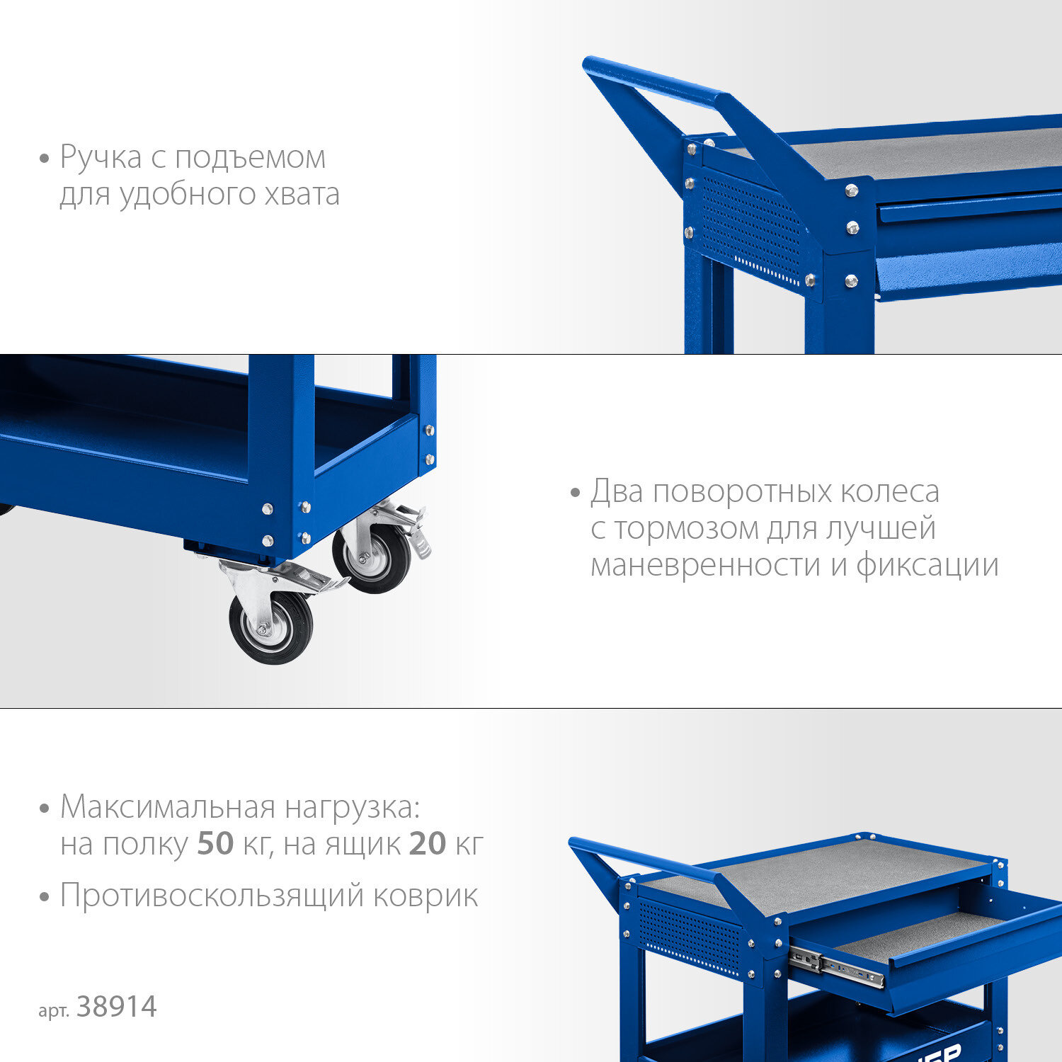 ЗУБР 820 х 405 х 955 мм, инструментальная тележка с выдвижным ящиком + 2 полки, Профессионал (38914) интересное: