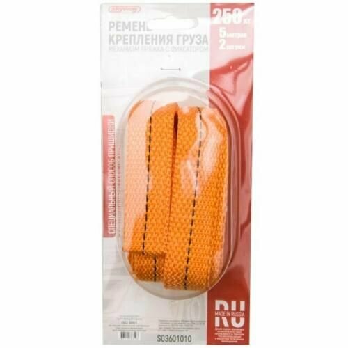 | Дополнительная информация | длина 1 стяжки 2,5 м, механизм:стальная пряжка с фиксатором, материал ремня 100% полиэстер, упаковка блистер |