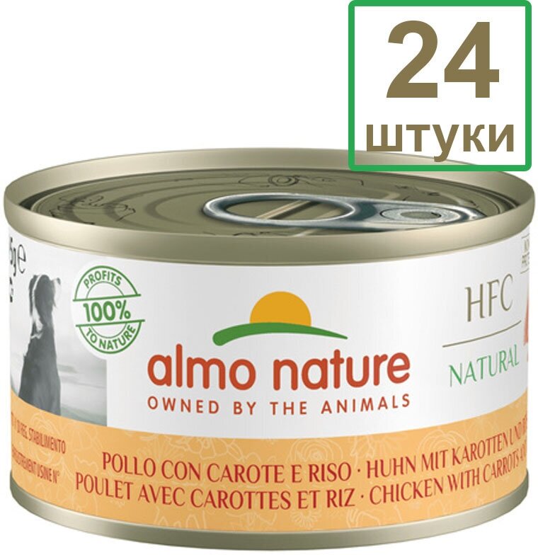 Almo Nature Набор 24 штуки по 95 г Консервы для собак "Курица с морковью и рисом по-домашнему"(HFC - Natural - Chicken with Carrots and Rice) 2.28кг