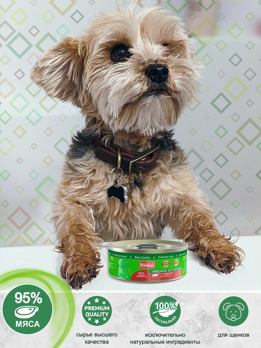 Четвероногий Гурман Корм консервированный для щенков Мясное ассорти с Говядиной, 100 г, 6 шт