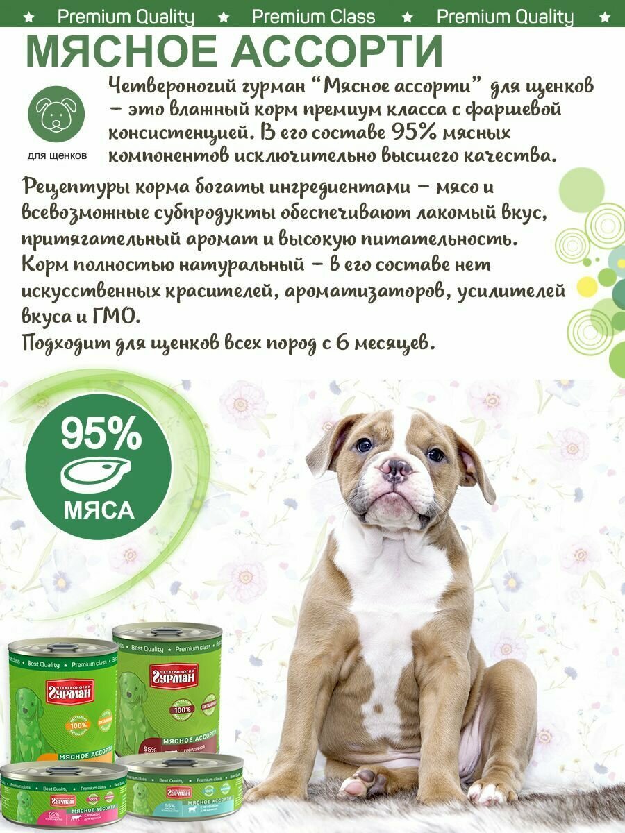 Четвероногий Гурман для щенков Мясное ассорти с Говядиной,консервы 100г (24 банки)