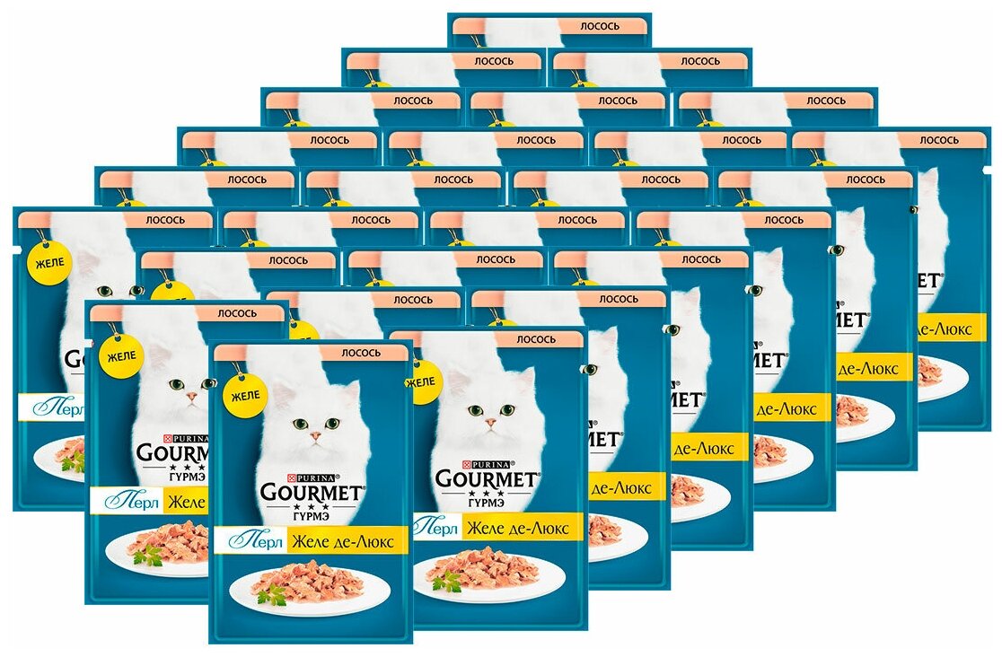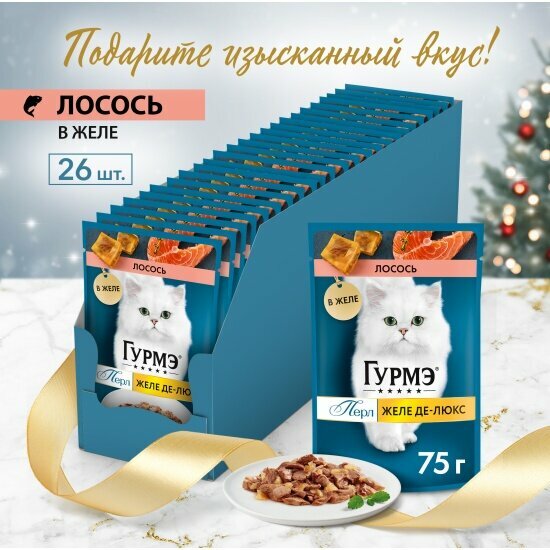 Гурмэ Перл Желе Де-Люкс 75 г влажный корм для кошек, с лососем в роскошном желе х26 штук