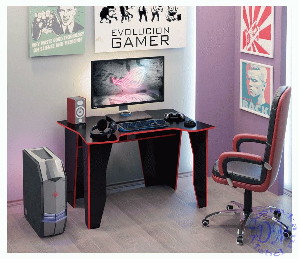 Стол игровой Страйкер-1, MFMaster, цвет: черный / красный, Ш:120 см. В:73 см. Г:89,2 см.