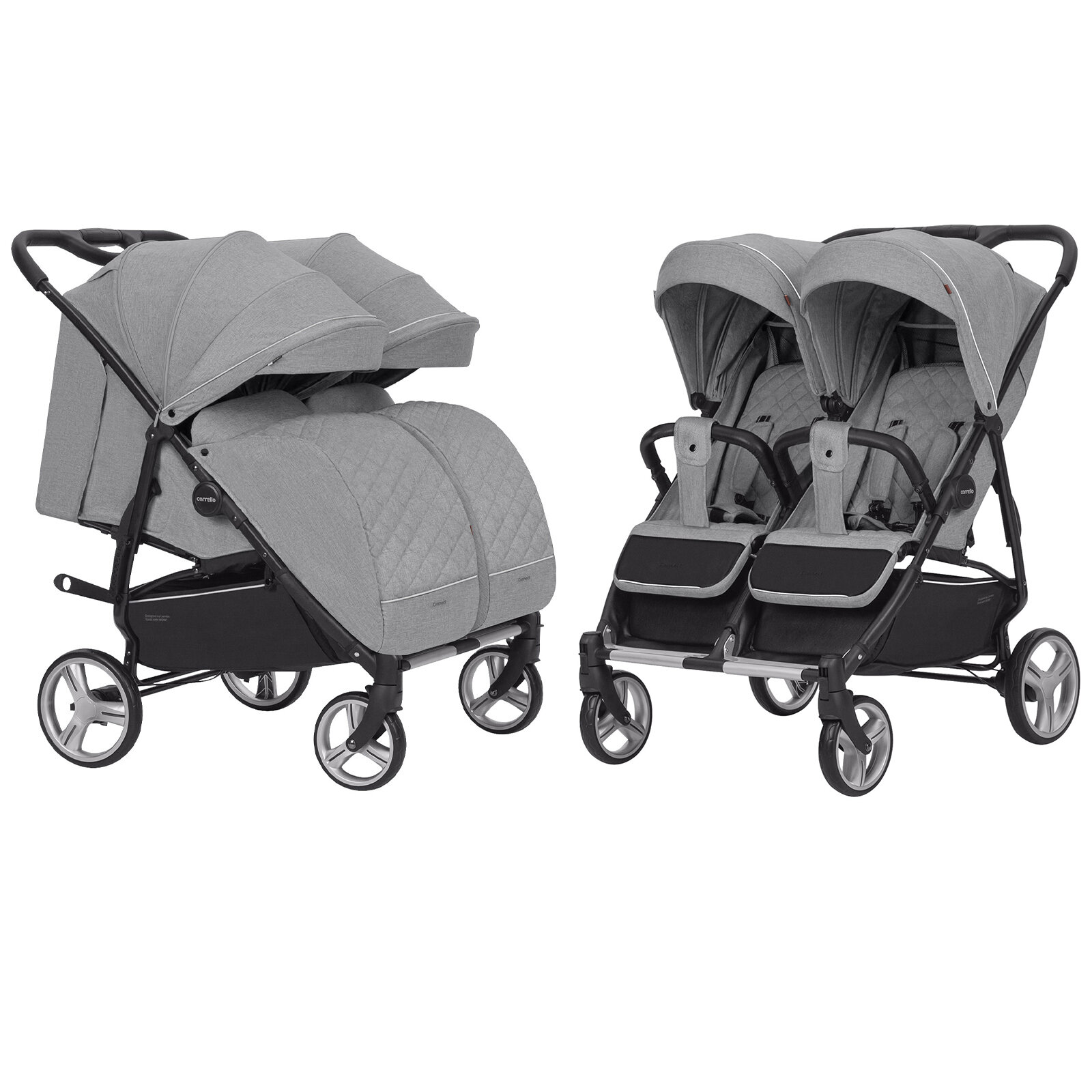 Универсальная коляска для двойни CARRELLO Connect CRL-5502/1 2 в 1, rock grey, цвет шасси: черный