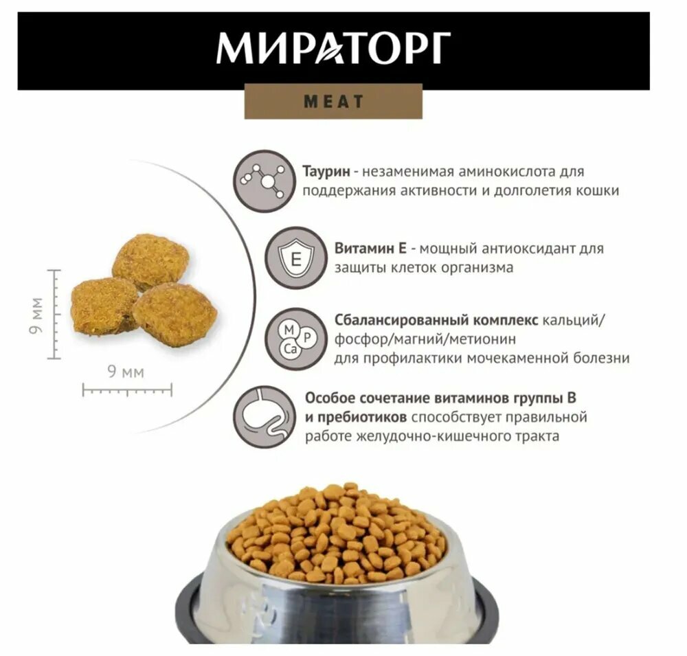Сухой корм мираторг MEAT для взрослых кошек с ароматной курочкой ( 1,5 кг)