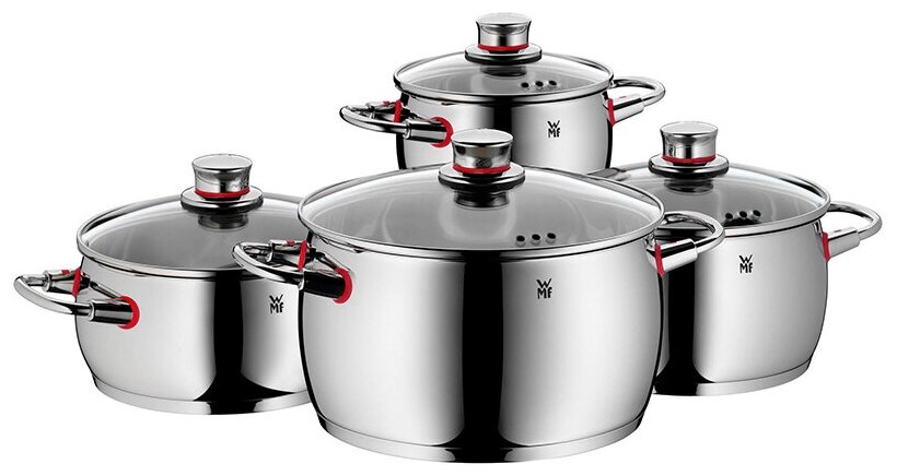 Набор из 4-х кастрюль из нержавеющей стали с крышками Quality One, стальной, серия Наборы посуды, кастрюли и все для приготовления, WMF, 3201001465 интересное: