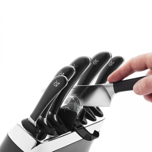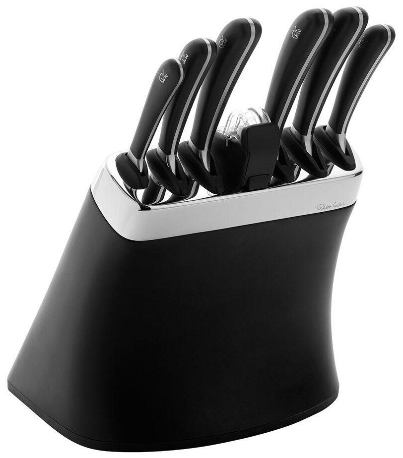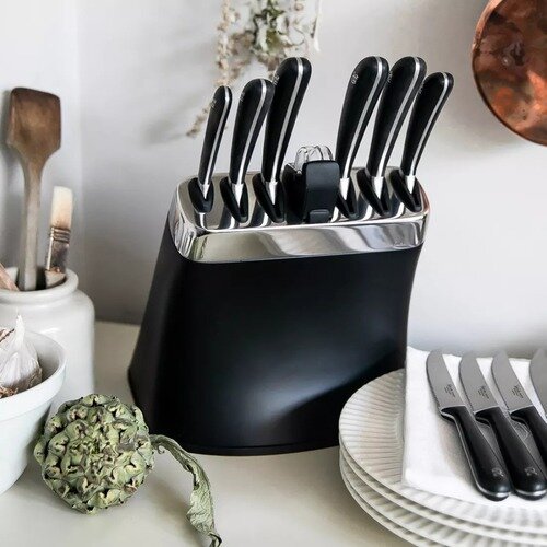 Набор из 6-ти ножей из высокоуглеродистой нержавеющей стали в пластиковой подставке с точилкой, рукоять пластик, черный, серия Signature Knives, Robert Welch, SIGBK2097V/8 интересное: