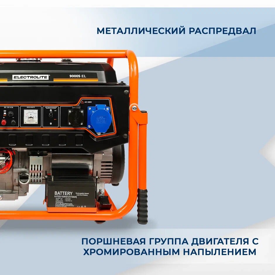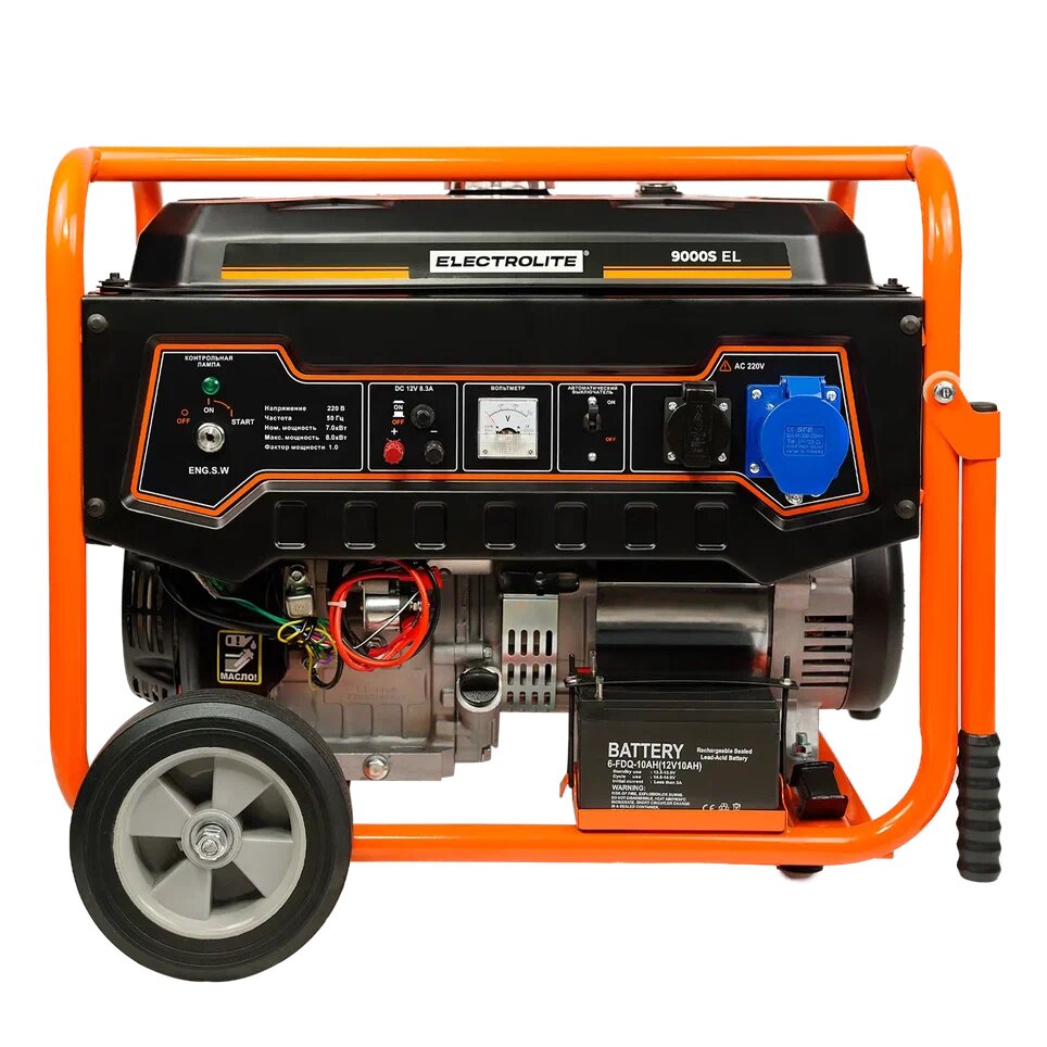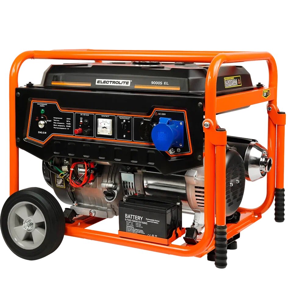 Генератор бензиновый Электрический Electrolite 9000S-EL ( 11.25 кВа пиковая нагрузка , 220 В / 12 В, 7 / 8 кВт, 50 Гц, 16 л.с, электростартер + АКБ )