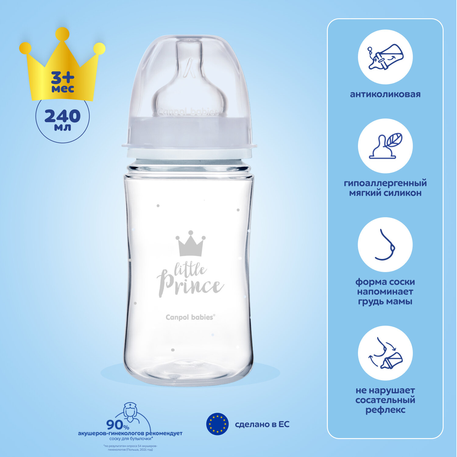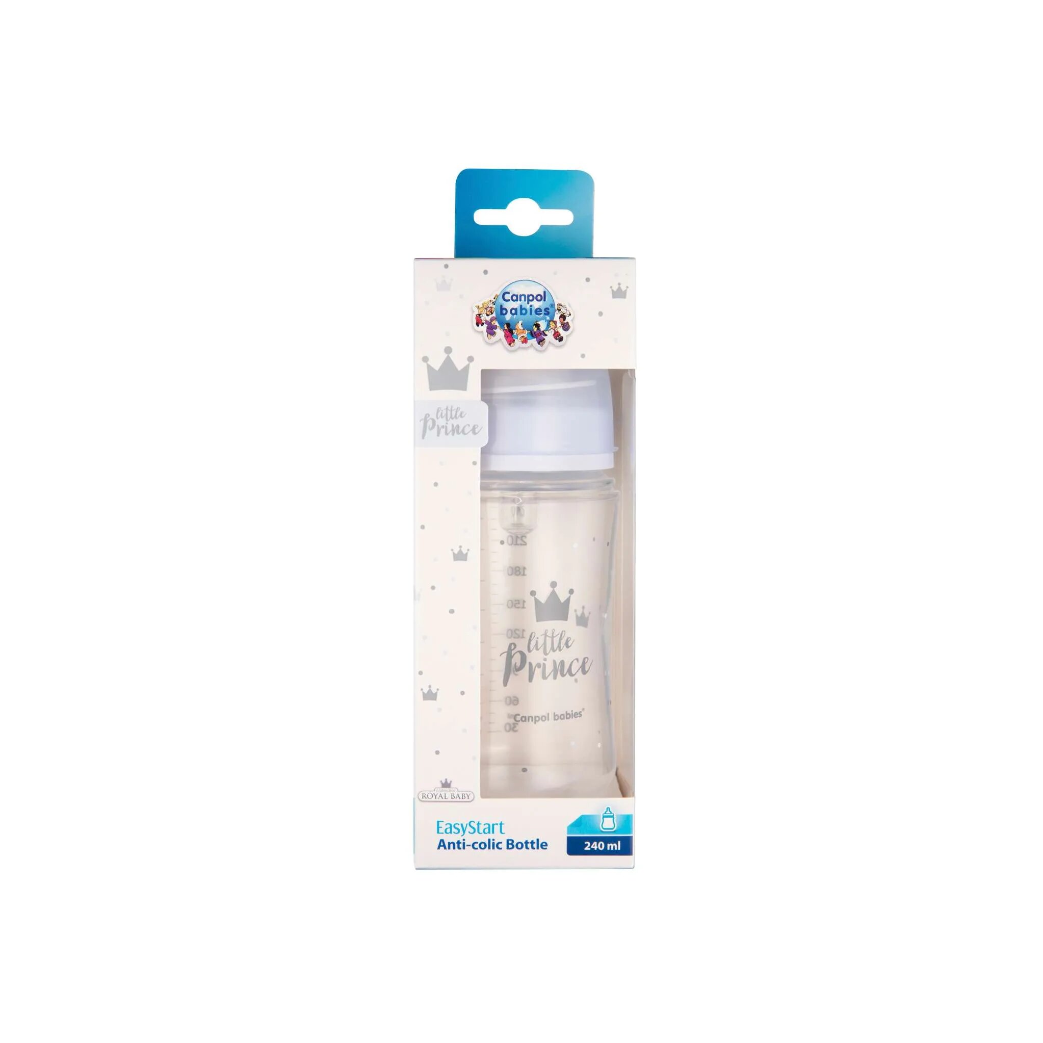 Купить Бутылочка для кормления Canpol Babies EasyStart Royal Baby PP с широким горлышком, 240мл (с 3 месяцев) голубая