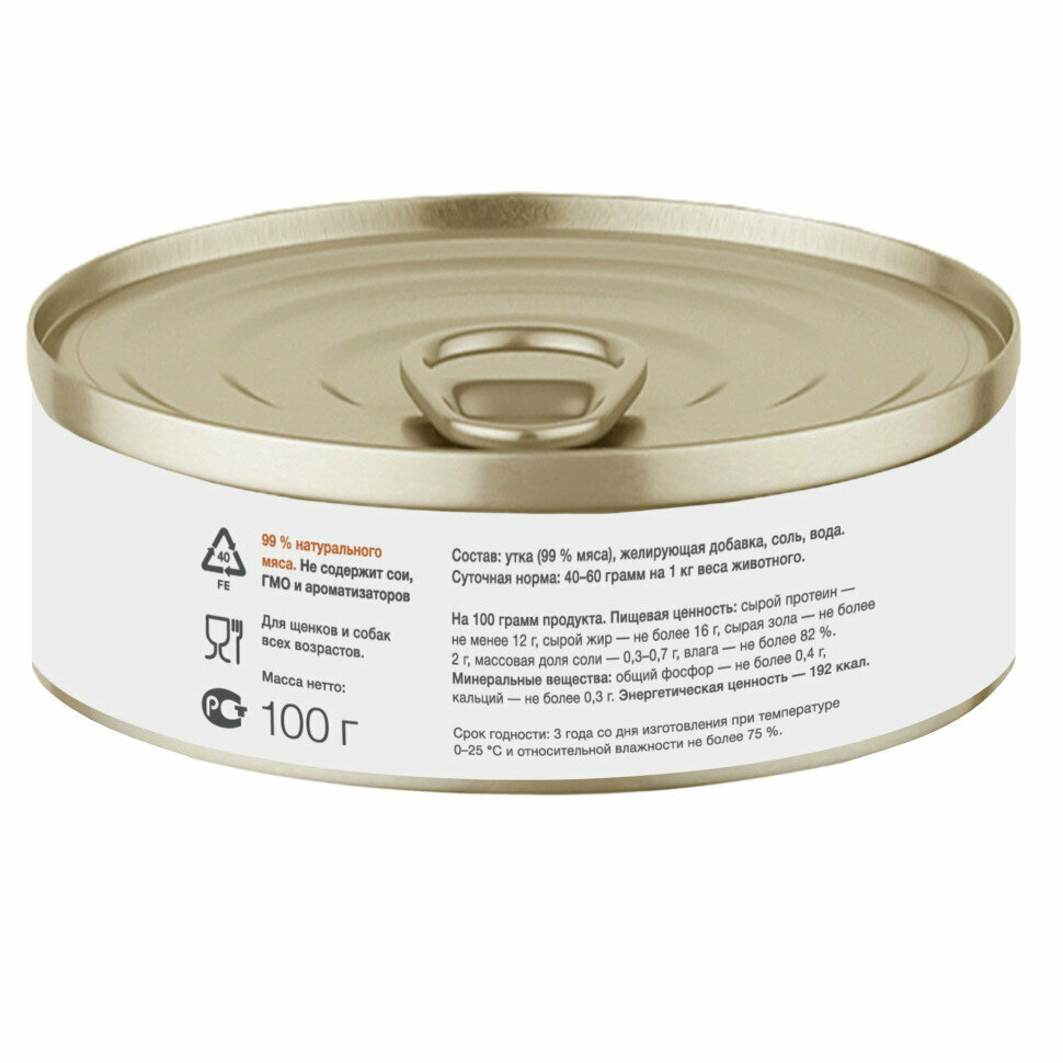 Премиум консервы для собак с уткой 99% 0,1 кг