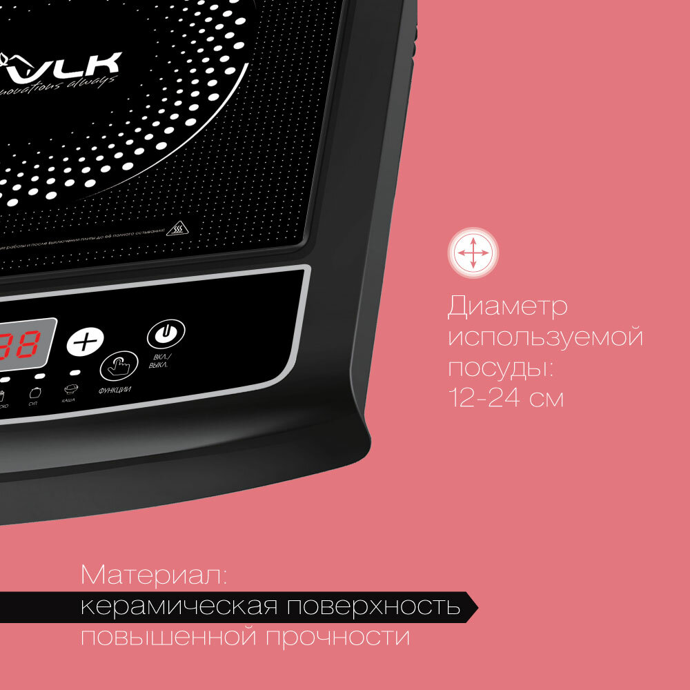 Индукционная плита настольная электрическая VLK Palermo-7726 / 2000 Вт / до 10 кг / до 240 градусов / 7 автоматических программ