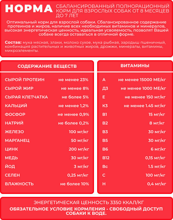 | Возраст животного | взрослые (1-6 лет) / Для взрослых / взрослые,для всех возрастов / для собак |