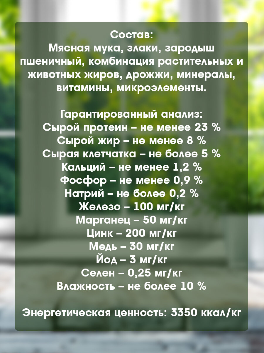 | Энергетическая ценность | 3450 ккал/кг |