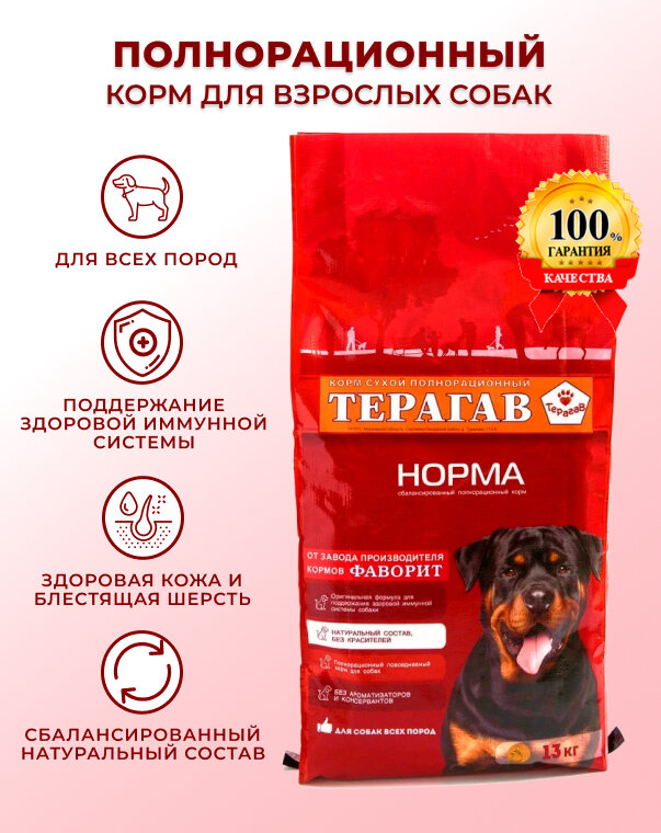 Корм Фаворит ТераГав "Норма" для взрослых собак всех пород, сухой, 13кг