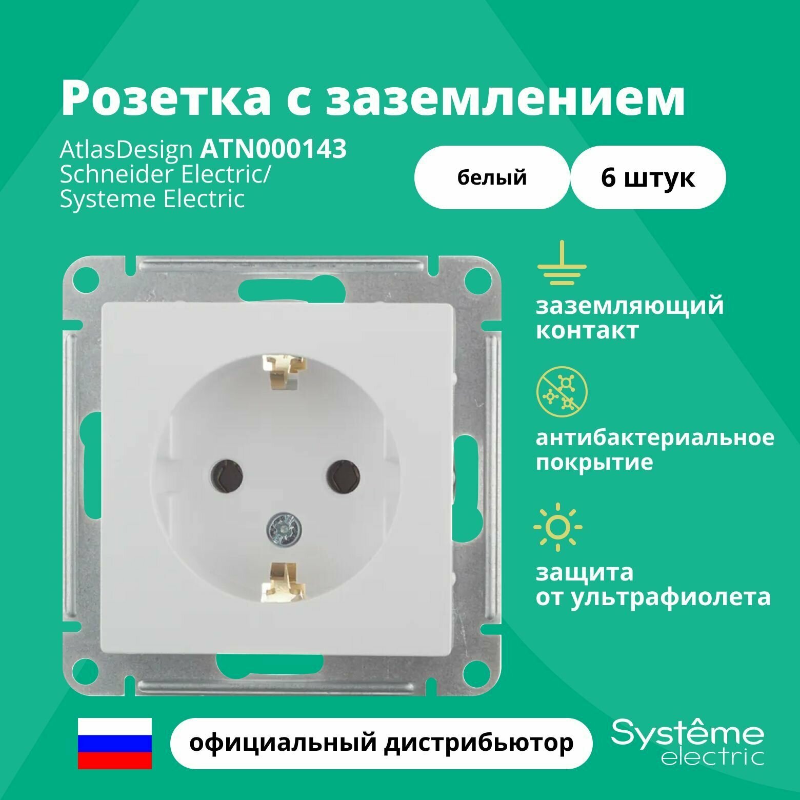 Розетка ATLASDESIGN, скрытый монтаж, с заземлением, белый | код. ATN000143 | Schneider Electric (6шт. в упак.)