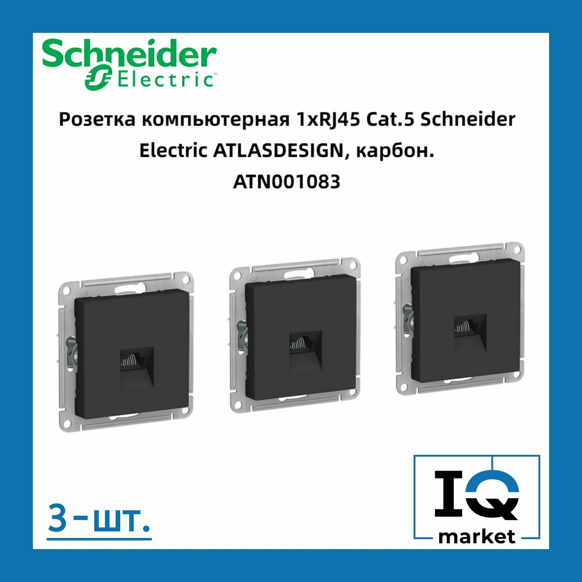Купить Розетка компьютерная RJ-45 кат. 5е, Карбон Schneider Electric, Atlas Design ATN001083 - 3шт