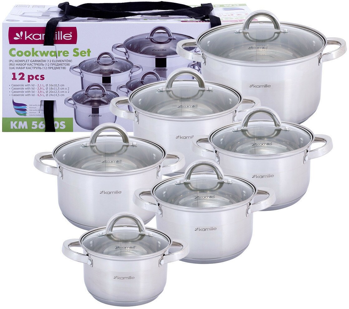 Купить Набор кастрюль 12 предметов из нержавеющей стали Kamille KM-5640S