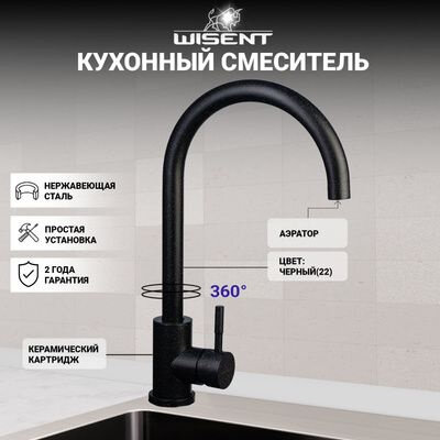 Смеситель для кухни (черный) WISENT W4998-3-22