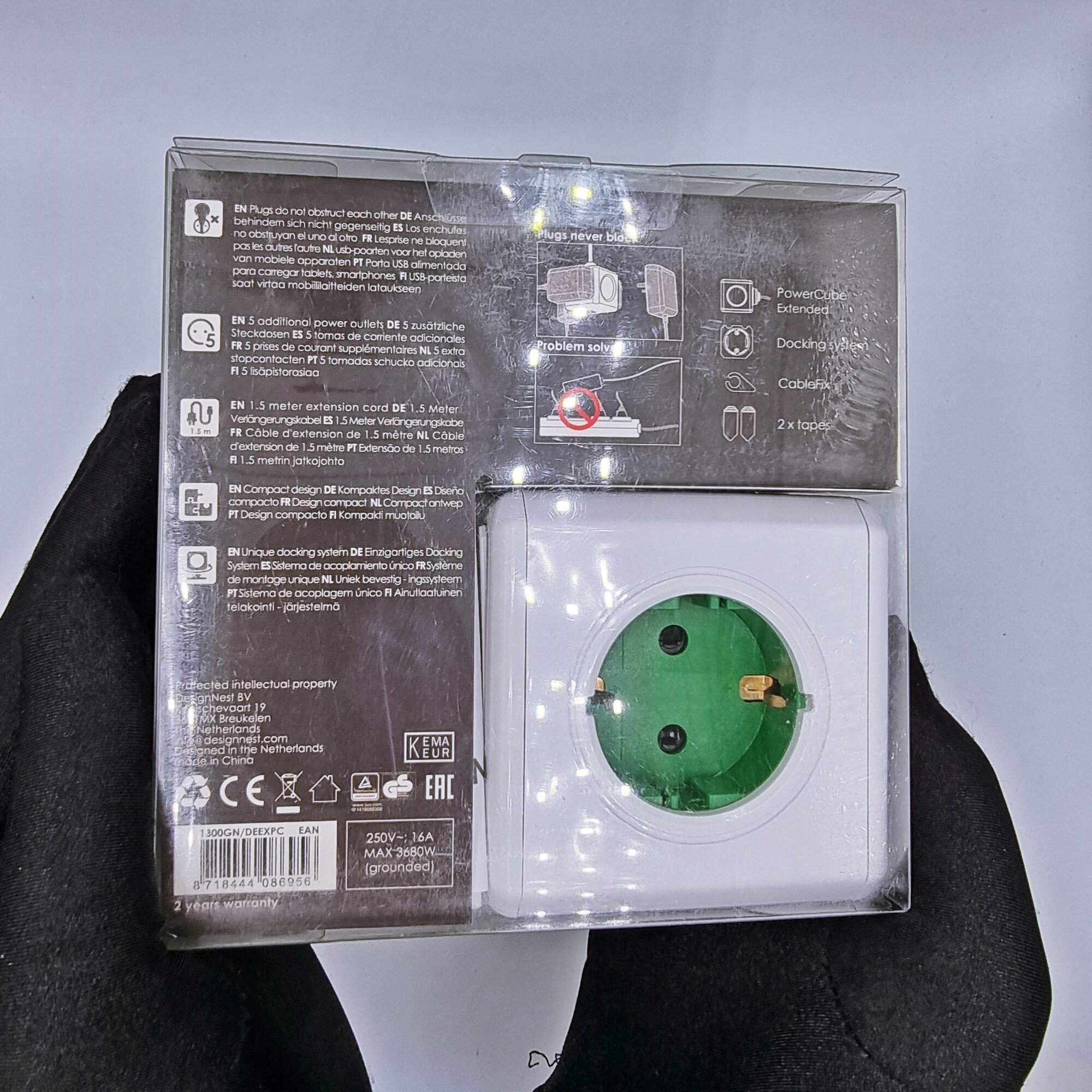 Фильтр сетевой (удлинитель) Allocacoc DesignNest PowerCube Extended GREY 1300GY/DEEXPC, 5 розеток, провод 1,5 метра, без USB, крепление в комплекте
