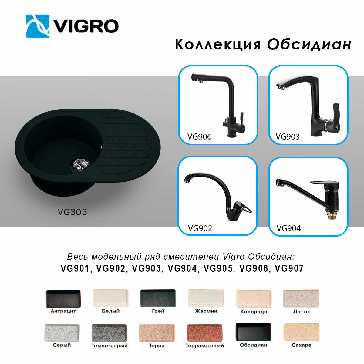 Мойка кухонная врезная Vigro VG303 обсидиан (740*490*200) интересное: