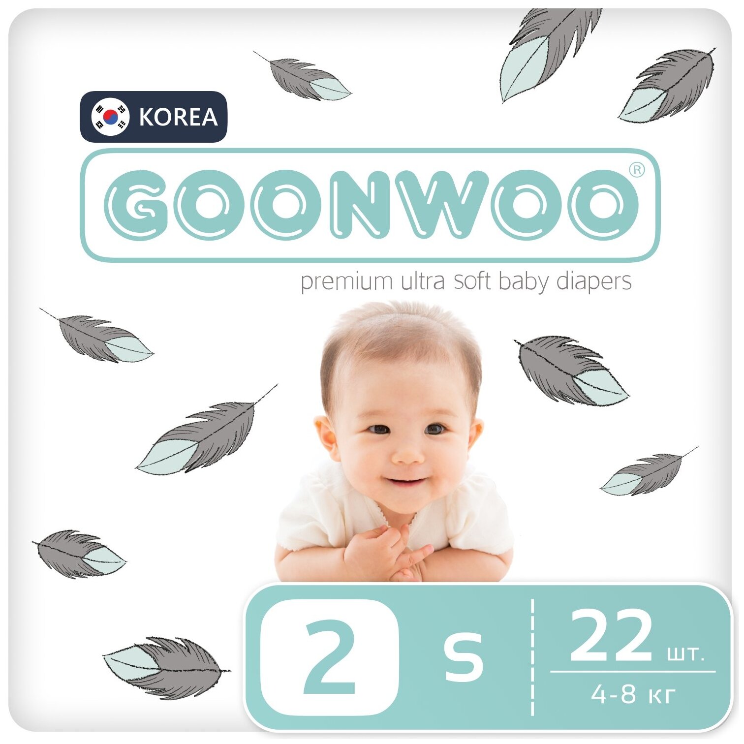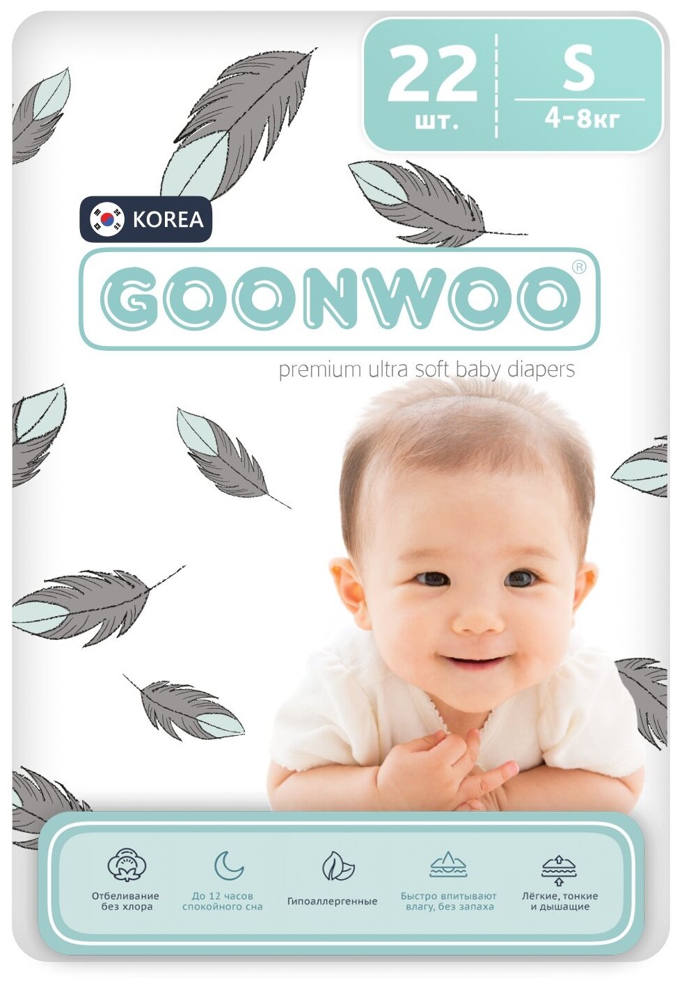 Подгузники GOONWOO размер 2 / S (4 - 8 кг), 22 шт.