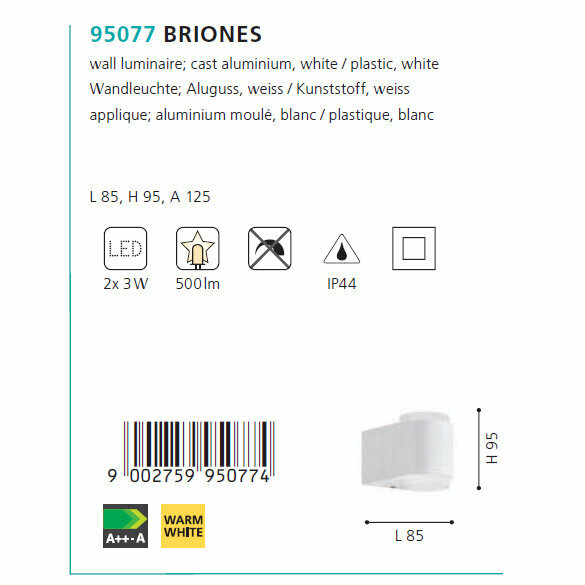 95077 Уличный светодиодный настенный светильник EGLO Briones интересное: