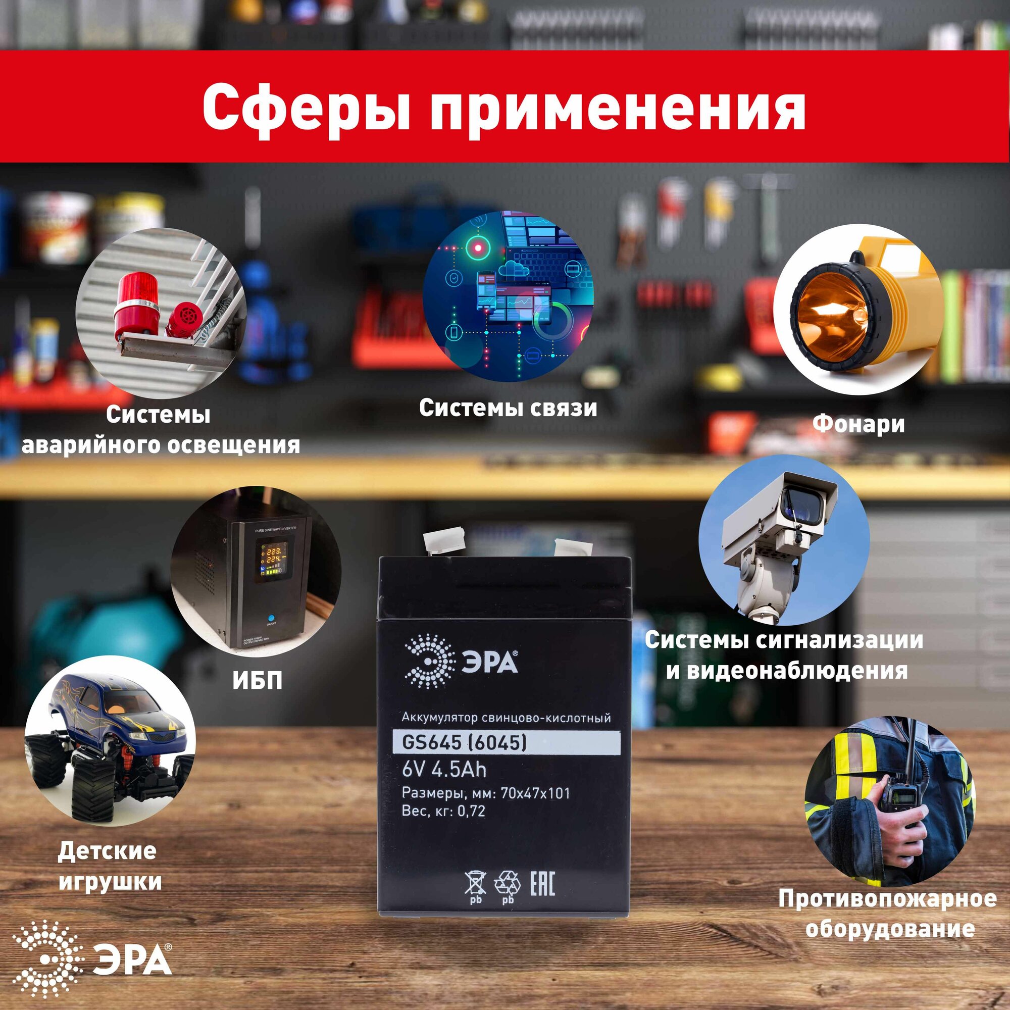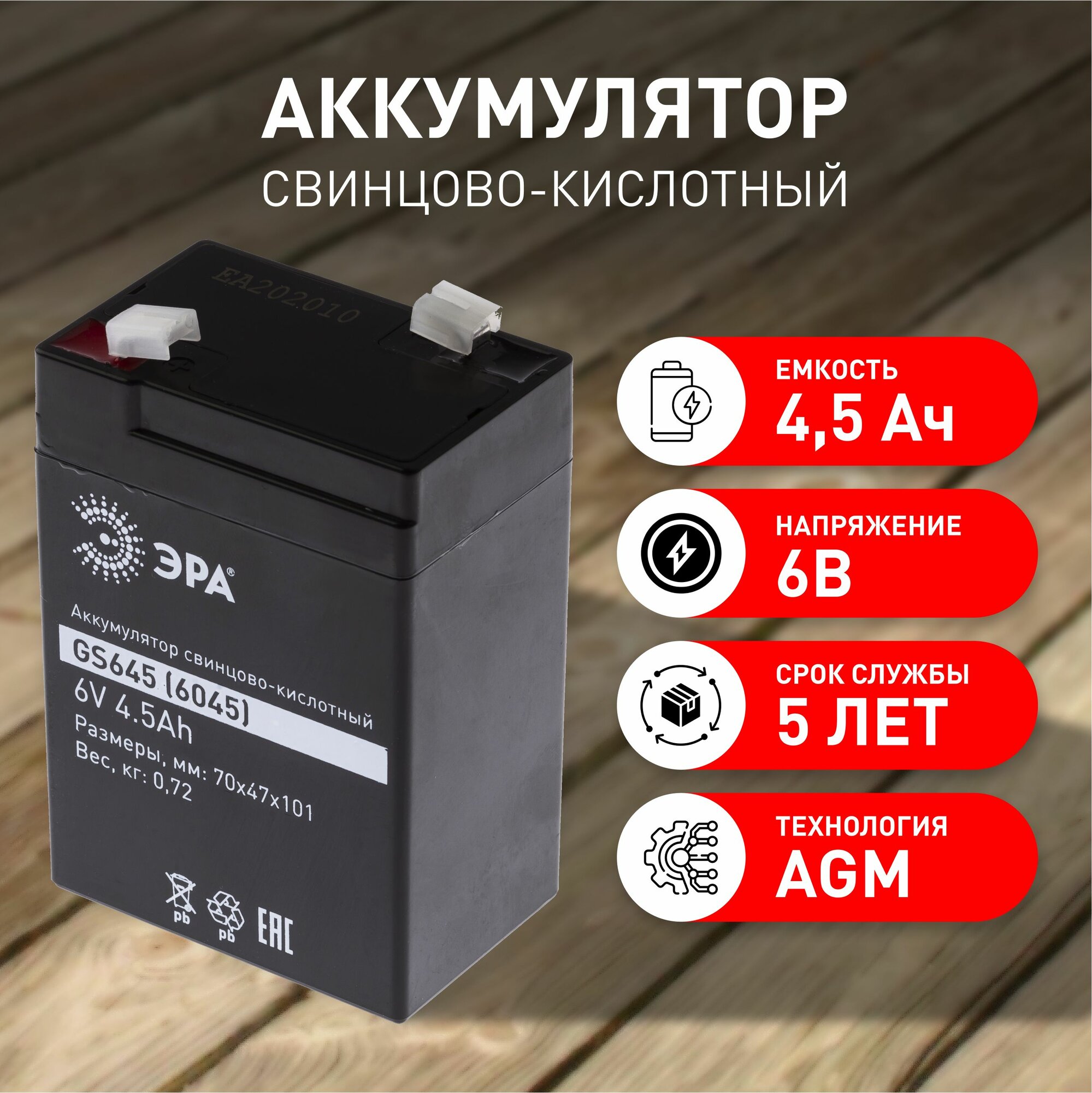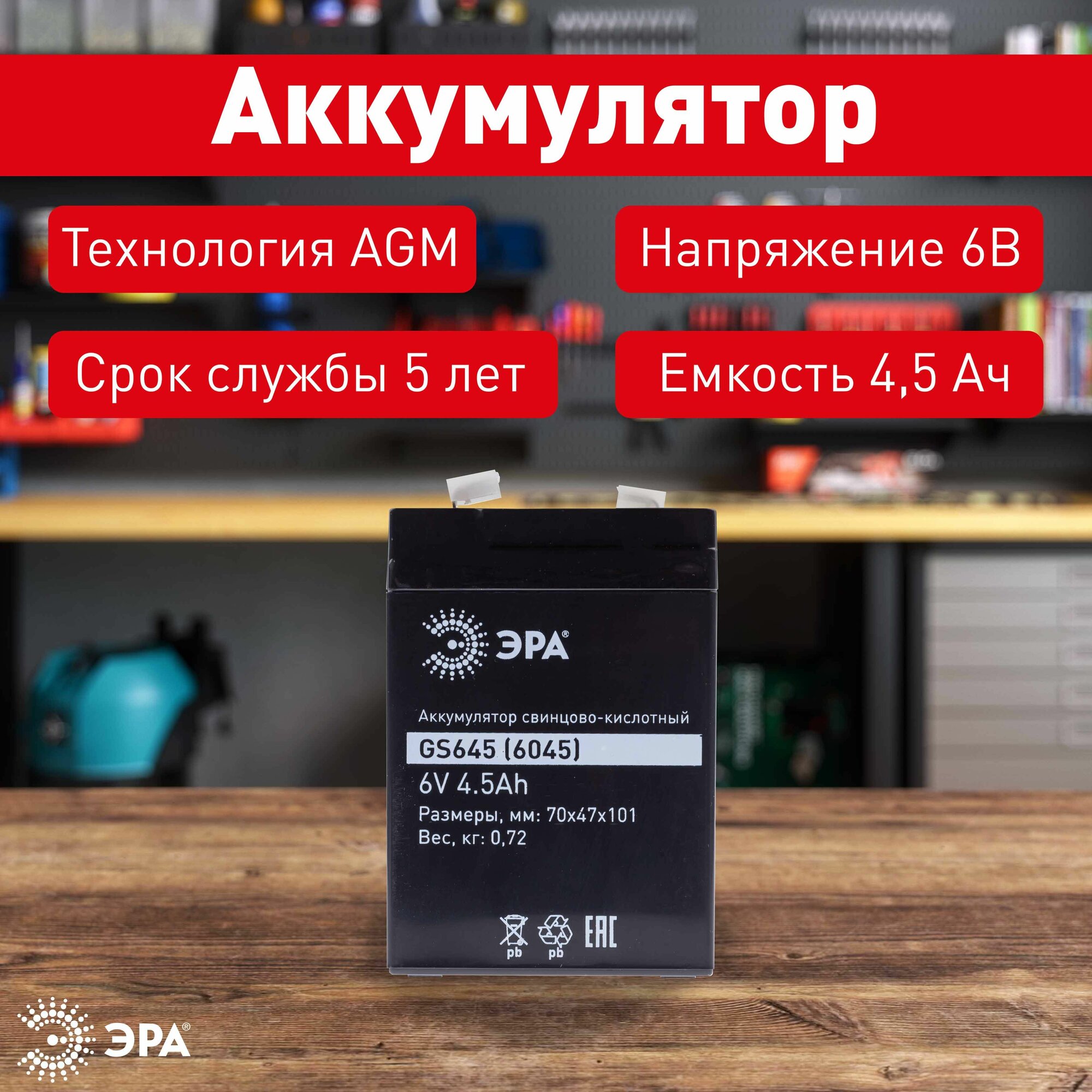 ЭРА Аккумулятор GS645 (Cвинцово-кислотный 6V 4,5)