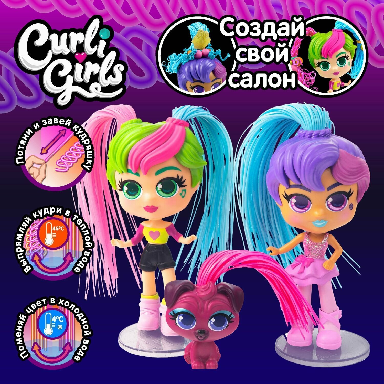 Куклы Кёрли гёрлс неоновая феерия (Curli Girls серия Color Magic) подружки Хейли и Келли со щенком, 82080S-2 интересное: