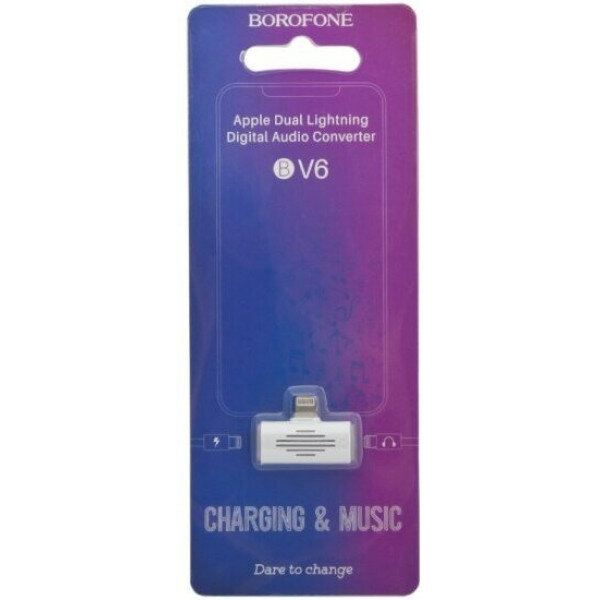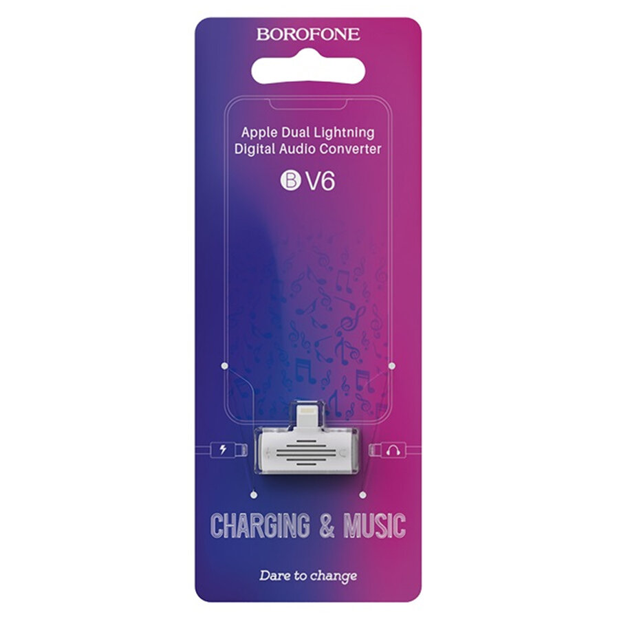 Купить Переходник Borofone BV6 Lightning (папа) на 2 Lightning (мама) аудио/зарядка белый