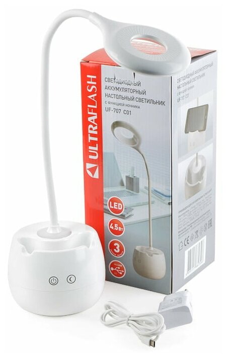 Светильник настольный аккумуляторный с пеналом, 707 С01 белый 20LED Ultraflash NEW