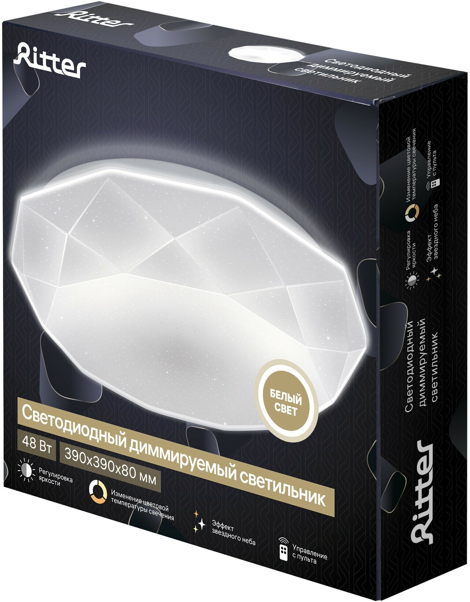 Светильник LED диммируемый с ДУ Ritter Brilliance 48Вт, 3000-6000К, 3800Лм, плафон с эффектом звездн . интересное: