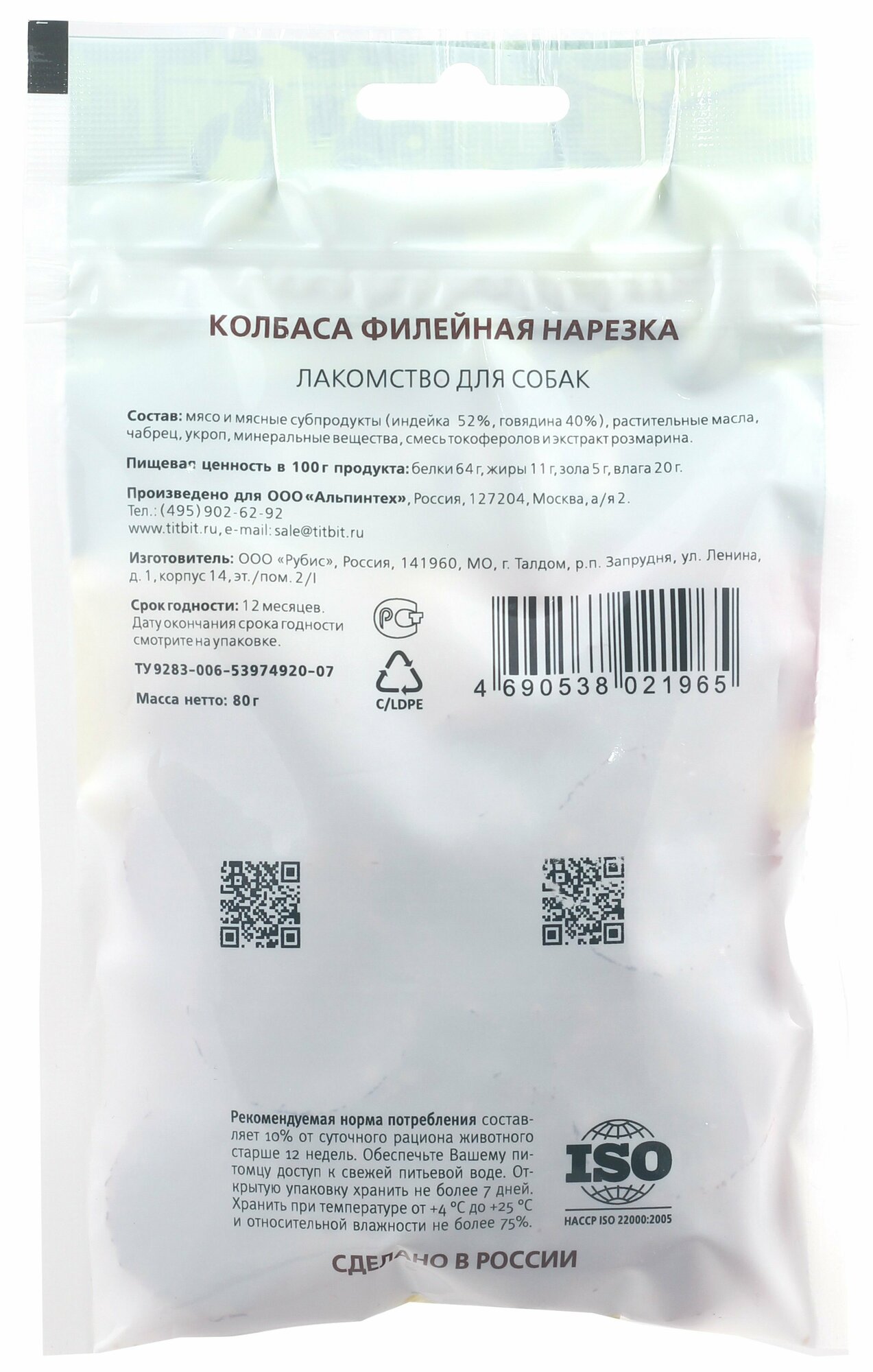 Лакомство для собак Titbit Нарезка Филейная Колбасный двор 80 г