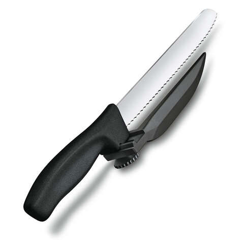 Нож Victorinox с упором для отрезания равномерных ломтиков, черный интересное: