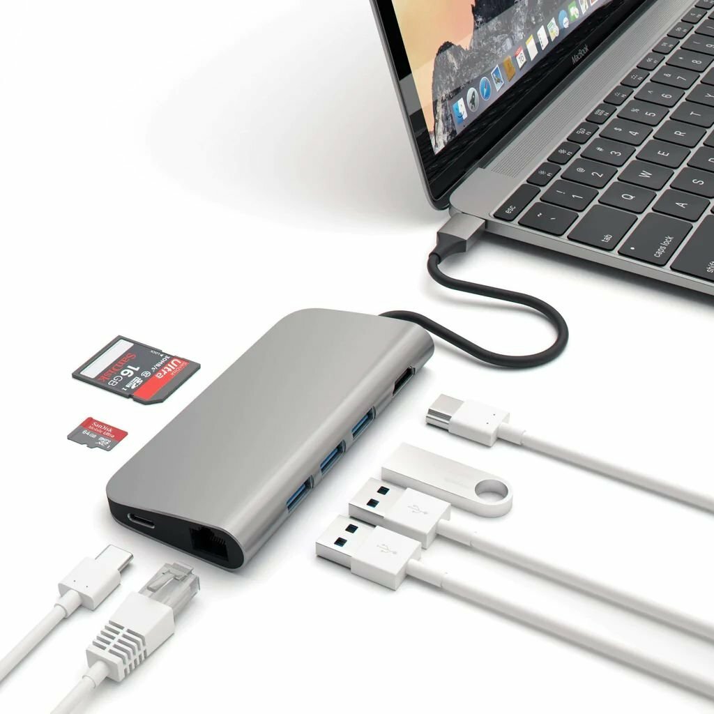 Купить Переходник Satechi Aluminum Multi-Port Adapter 4K with Ethernet серый (ST-TCMAM)